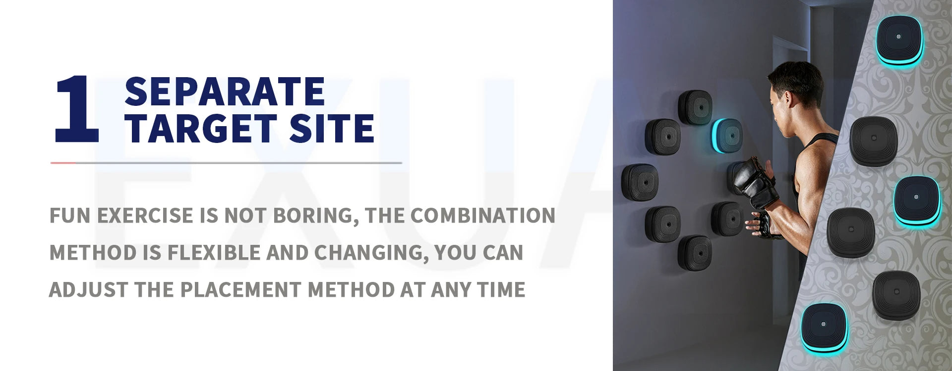 ★★★★★ As someone who works out at home, this split boxing machine is a game changer. I was able to install the pads exactly where I needed them. It’s sturdy, responsive, and the Bluetooth music sync keeps me motivated. Highly recommend! Michael